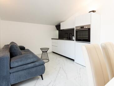 Az Apartman 3 főt tud fogadni. Az ágyak a/az 1 hálószobában, és a nappaliban/ben vannak, melynek méretei 40m2. A forró nyári estéket a vendégek saját balkonukon élvezhetik. Az apartmanból tengerre néző kilátás nyílik. A közös barbecue-helyet a vendég szabadon használhatja.