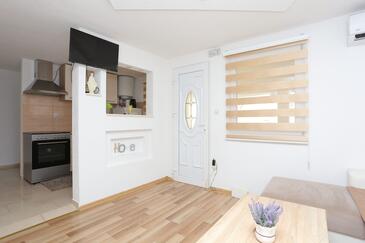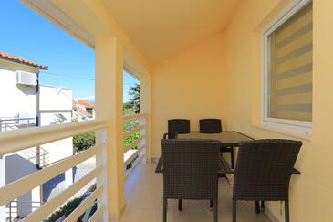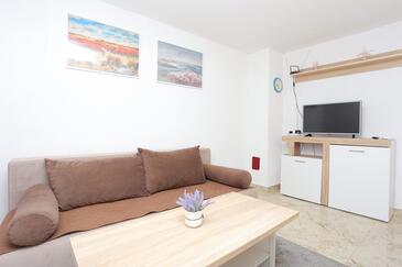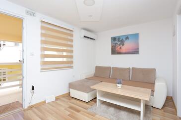 Az Apartman 5 főt tud fogadni. Az ágyak a/az 2 hálószobában, és a nappaliban/ben vannak, melynek méretei 44m2. A forró nyári estéket a vendégek saját balkonukon élvezhetik. Az apartmanból tengerre néző kilátás nyílik. A közös barbecue-helyet a vendég szabadon használhatja.