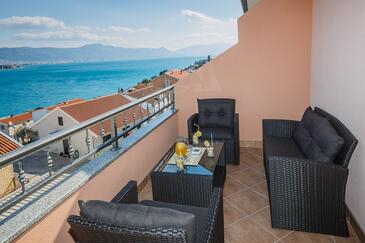 Az Apartman 4 főt tud fogadni. Az ágyak a/az 2 hálószobában vannak, melynek méretei 48m2. A forró nyári estéket a vendégek saját teraszukon élvezhetik. Az apartmanból tengerre néző kilátás nyílik. A közös barbecue-helyet a vendég szabadon használhatja.