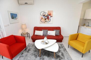 Az Apartman 2 főt tud fogadni. Az ágyak a/az 1 hálószobában vannak, melynek méretei 35m2. A forró nyári estéket a vendégek saját teraszukon élvezhetik. Az apartmanból tengerre néző kilátás nyílik. A közös barbecue-helyet a vendég szabadon használhatja.