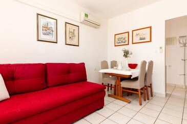 Az Apartman 4 főt tud fogadni. Az ágyak a/az 2 hálószobában vannak, melynek méretei 46m2. A forró nyári estéket a vendégek saját teraszukon élvezhetik. A közös barbecue-helyet a vendég szabadon használhatja. A szállásegységbe lehetséges háziállatot hozni felár ellenében.