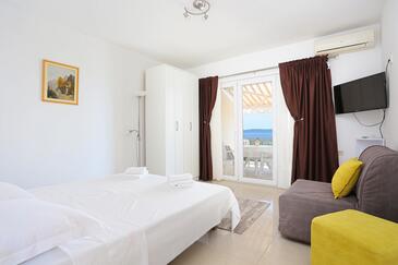 Az Apartman 2 főt tud fogadni. Az ágyak a/az 1 hálószobában vannak, melynek méretei 26m2. A forró nyári estéket a vendégek saját teraszukon élvezhetik. Az apartmanból tengerre néző kilátás nyílik. A közös barbecue-helyet a vendég szabadon használhatja.