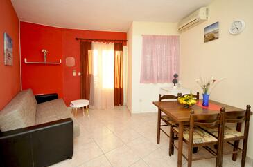 Az Apartman 4 főt tud fogadni. Az ágyak a/az 1 hálószobában, és a nappaliban/ben vannak, melynek méretei 45m2. A forró nyári estéket a vendégek saját teraszukon élvezhetik. Az apartmanból tengerre néző kilátás nyílik. A közös barbecue-helyet a vendég szabadon használhatja. A lefoglalt szállásegység bizonyos helyiségei nem összekötöttek.