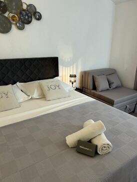 Az Apartman 4 főt tud fogadni. Az ágyak a/az 2 hálószobában vannak, melynek méretei 55m2. A forró nyári estéket a vendégek saját teraszukon élvezhetik. Az apartmanból tengerre néző kilátás nyílik. A közös barbecue-helyet a vendég szabadon használhatja. A vendégek itt tartózkodásuk ideje alatt használhatják a közös medencét.