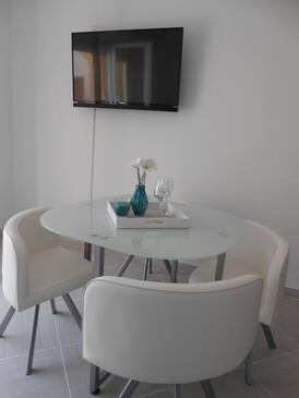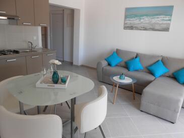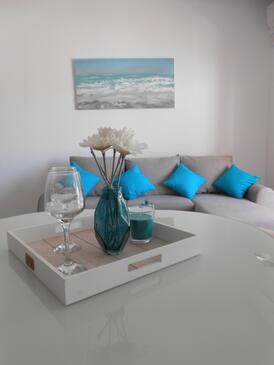 Az Apartman 4 főt tud fogadni. Az ágyak a/az 2 hálószobában vannak, melynek méretei 43m2. A forró nyári estéket a vendégek saját teraszukon élvezhetik. Az apartmanból tengerre néző kilátás nyílik. A közös barbecue-helyet a vendég szabadon használhatja.