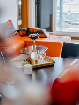 Az Apartman 6 főt tud fogadni. Az ágyak a/az 2 hálószobában, és a nappaliban/ben vannak, melynek méretei 82m2. A forró nyári estéket a vendégek saját balkonukon élvezhetik. Az apartmanból tengerre néző kilátás nyílik. A közös barbecue-helyet a vendég szabadon használhatja. A lefoglalt szállásegység vendégeinek az érkezés napján a helyszínen letétet kell fizetniük (az összeg a honlapon fel van tüntetve).