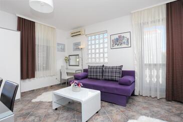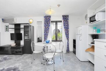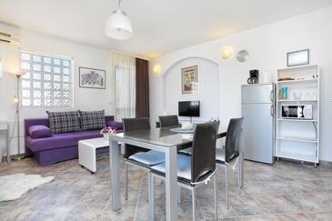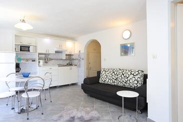 Az Apartman 4 főt tud fogadni. Az ágyak a/az 1 hálószobában, és a nappaliban/ben vannak, melynek méretei 40m2. A forró nyári estéket a vendégek saját teraszukon élvezhetik. Az apartmanból tengerre néző kilátás nyílik. A közös barbecue-helyet a vendég szabadon használhatja. A szállásegységbe lehetséges háziállatot hozni felár ellenében.