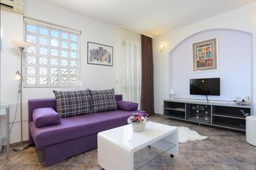 Az Apartman 4 főt tud fogadni. Az ágyak a/az 1 hálószobában, és a nappaliban/ben vannak, melynek méretei 40m2. A forró nyári estéket a vendégek saját teraszukon élvezhetik. Az apartmanból tengerre néző kilátás nyílik. A közös barbecue-helyet a vendég szabadon használhatja. A szállásegységbe lehetséges háziállatot hozni felár ellenében.