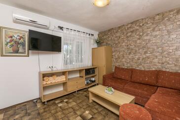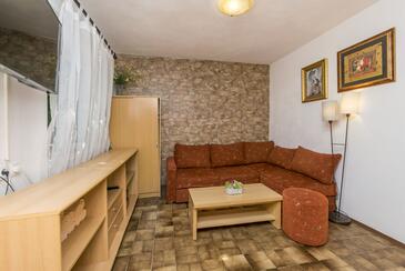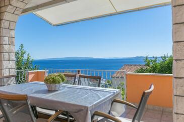 Az Apartman 5 főt tud fogadni. Az ágyak a/az 2 hálószobában, és a nappaliban/ben vannak, melynek méretei 53m2. A forró nyári estéket a vendégek saját teraszukon élvezhetik. Az apartmanból tengerre néző kilátás nyílik. A közös barbecue-helyet a vendég szabadon használhatja. A szállásegységbe lehetséges háziállatot hozni felár ellenében.