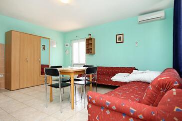 Az Apartman 4 főt tud fogadni. Az ágyak a/az 1 hálószobában, és a nappaliban/ben vannak, melynek méretei 37m2. A forró nyári estéket a vendégek saját balkonukon élvezhetik. Az apartmanból tengerre néző kilátás nyílik. A közös barbecue-helyet a vendég szabadon használhatja. A szállásegységbe lehetséges háziállatot hozni felár ellenében.