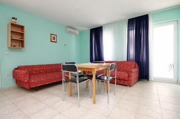Az Apartman 4 főt tud fogadni. Az ágyak a/az 1 hálószobában, és a nappaliban/ben vannak, melynek méretei 37m2. A forró nyári estéket a vendégek saját balkonukon élvezhetik. Az apartmanból tengerre néző kilátás nyílik. A közös barbecue-helyet a vendég szabadon használhatja. A szállásegységbe lehetséges háziállatot hozni felár ellenében.
