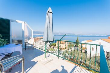 Az Apartman 4 főt tud fogadni. Az ágyak a/az 2 hálószobában vannak, melynek méretei 41m2. A forró nyári estéket a vendégek saját teraszukon élvezhetik. Az apartmanból tengerre néző kilátás nyílik. A közös barbecue-helyet a vendég szabadon használhatja. A szállásegységbe lehetséges háziállatot hozni felár ellenében.