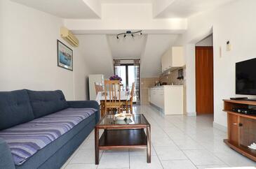 Az Apartman 7 főt tud fogadni. Az ágyak a/az 3 hálószobában, és a nappaliban/ben vannak, melynek méretei 65m2. A forró nyári estéket a vendégek saját balkonukon élvezhetik. Az apartmanból tengerre néző kilátás nyílik. A közös barbecue-helyet a vendég szabadon használhatja.