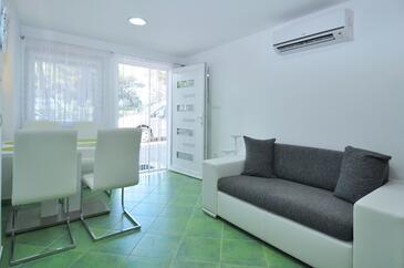 Az Apartman 6 főt tud fogadni. Az ágyak a/az 2 hálószobában, és a nappaliban/ben vannak, melynek méretei 72m2. A forró nyári estéket a vendégek saját teraszukon élvezhetik. Az apartmanból tengerre néző kilátás nyílik. A közös barbecue-helyet a vendég szabadon használhatja. A szállásegységbe lehetséges háziállatot hozni felár ellenében.