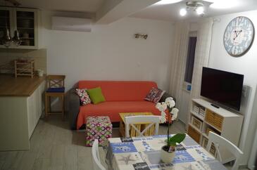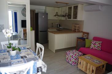 Az Apartman 5 főt tud fogadni. Az ágyak a/az 2 hálószobában, és a nappaliban/ben vannak, melynek méretei 41m2. A forró nyári estéket a vendégek saját teraszukon élvezhetik. Az apartmanból tengerre néző kilátás nyílik. A teljes élvezet és kikapcsolódás érdekében van saját barbecue hely is, csakis e szálláshely vendégei számára.