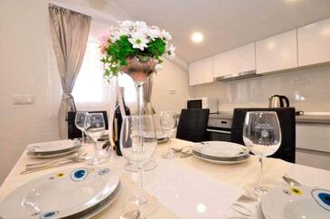 Az Apartman 6 főt tud fogadni. Az ágyak a/az 2 hálószobában, és a nappaliban/ben vannak, melynek méretei 50m2. A forró nyári estéket a vendégek saját teraszukon élvezhetik. Az apartmanból tengerre néző kilátás nyílik. A közös barbecue-helyet a vendég szabadon használhatja.