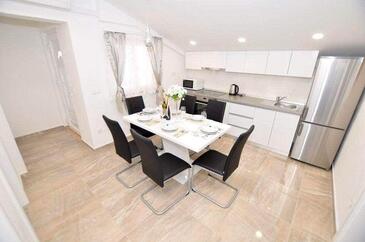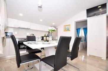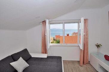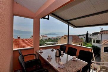 Az Apartman 6 főt tud fogadni. Az ágyak a/az 2 hálószobában, és a nappaliban/ben vannak, melynek méretei 50m2. A forró nyári estéket a vendégek saját teraszukon élvezhetik. Az apartmanból tengerre néző kilátás nyílik. A közös barbecue-helyet a vendég szabadon használhatja.