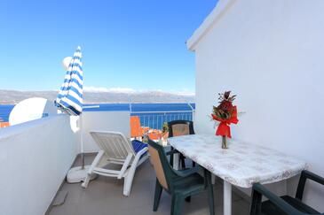 Az Apartman 3 főt tud fogadni. Az ágyak a/az 1 hálószobában vannak, melynek méretei 22m2. A forró nyári estéket a vendégek saját teraszukon élvezhetik. Az apartmanból tengerre néző kilátás nyílik. A közös barbecue-helyet a vendég szabadon használhatja. A szállásegységbe lehetséges háziállatot hozni felár ellenében.