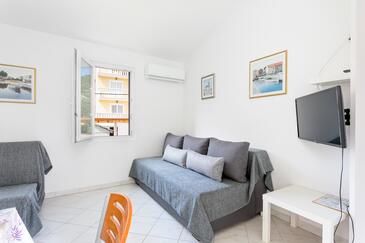 Az Apartman 4 főt tud fogadni. Az ágyak a/az 1 hálószobában, és a nappaliban/ben vannak, melynek méretei 30m2. A forró nyári estéket a vendégek saját balkonukon élvezhetik. Az apartmanból tengerre néző kilátás nyílik. A közös barbecue-helyet a vendég szabadon használhatja.