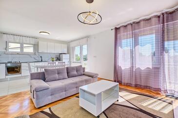 Az Apartman 5 főt tud fogadni. Az ágyak a/az 3 hálószobában vannak, melynek méretei 110m2. A forró nyári estéket a vendégek saját balkonukon élvezhetik. Az apartmanból tengerre néző kilátás nyílik. A közös barbecue-helyet a vendég szabadon használhatja.