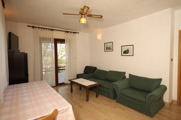 Az Apartman 7 főt tud fogadni. Az ágyak a/az 3 hálószobában vannak, melynek méretei 79m2. A forró nyári estéket a vendégek saját teraszukon élvezhetik. Az apartmanból tengerre néző kilátás nyílik. A közös barbecue-helyet a vendég szabadon használhatja. A szállásegységbe lehetséges háziállatot hozni felár ellenében.