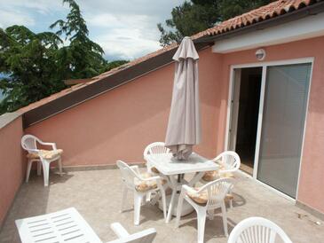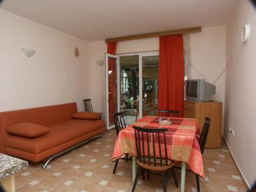 Az Apartman 4 főt tud fogadni. Az ágyak a/az 1 hálószobában, és a étkezőban/ben vannak, melynek méretei 30m2. A forró nyári estéket a vendégek saját teraszukon élvezhetik. Az apartmanból tengerre néző kilátás nyílik. A közös barbecue-helyet a vendég szabadon használhatja. A szállásegységbe lehetséges háziállatot hozni felár ellenében.