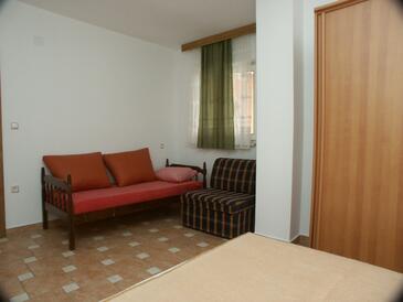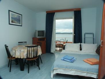 Az Apartman 4 főt tud fogadni. Az ágyak a/az 1 hálószobában, és a étkezőban/ben vannak, melynek méretei 30m2. A forró nyári estéket a vendégek saját teraszukon élvezhetik. Az apartmanból tengerre néző kilátás nyílik. A közös barbecue-helyet a vendég szabadon használhatja. A szállásegységbe lehetséges háziállatot hozni felár ellenében.