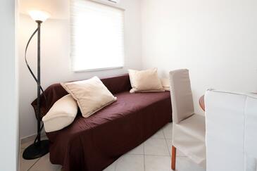 Az Apartman 3 főt tud fogadni. Az ágyak a/az 1 hálószobában, és a nappaliban/ben vannak, melynek méretei 38m2. A forró nyári estéket a vendégek saját balkonukon élvezhetik. Az apartmanból tengerre néző kilátás nyílik.
