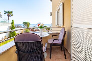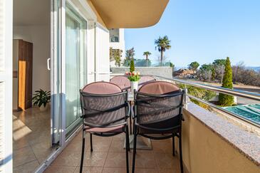 Az Apartman 5 főt tud fogadni. Az ágyak a/az 2 hálószobában, és a nappaliban/ben vannak, melynek méretei 68m2. A forró nyári estéket a vendégek saját balkonukon élvezhetik. Az apartmanból tengerre néző kilátás nyílik. A közös barbecue-helyet a vendég szabadon használhatja. A vendégek itt tartózkodásuk ideje alatt használhatják a közös medencét. A szállásegységbe lehetséges háziállatot hozni felár ellenében.