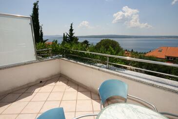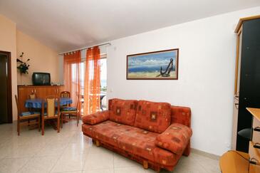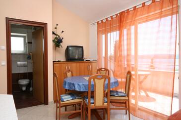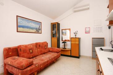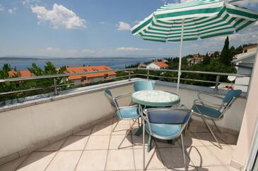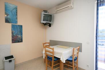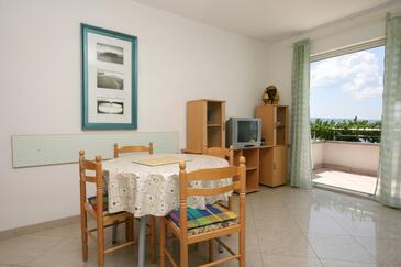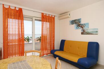Az Apartman 6 főt tud fogadni. Az ágyak a/az 1 hálószobában, és a étkezőban/ben vannak, melynek méretei 40m2. A forró nyári estéket a vendégek saját balkonukon élvezhetik. Az apartmanból tengerre néző kilátás nyílik. A közös barbecue-helyet a vendég szabadon használhatja. A szállásegységbe lehetséges háziállatot hozni felár ellenében.