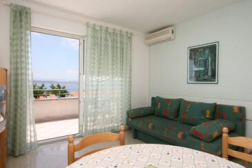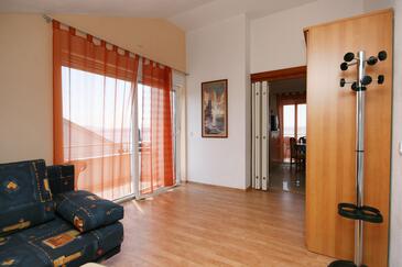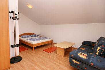 Az Apartman 6 főt tud fogadni. Az ágyak a/az 1 hálószobában, és a étkezőban/ben vannak, melynek méretei 40m2. A forró nyári estéket a vendégek saját balkonukon élvezhetik. Az apartmanból tengerre néző kilátás nyílik. A közös barbecue-helyet a vendég szabadon használhatja. A szállásegységbe lehetséges háziállatot hozni felár ellenében.