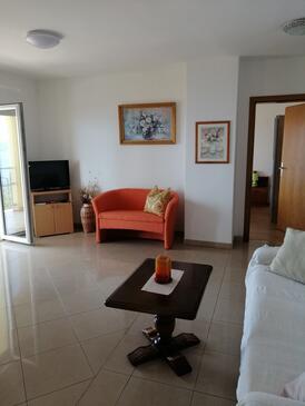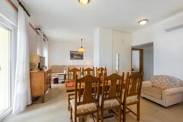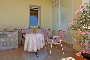Az Apartman 6 főt tud fogadni. Az ágyak a/az 3 hálószobában vannak, melynek méretei 70m2. A forró nyári estéket a vendégek saját teraszukon élvezhetik. Az apartmanból tengerre néző kilátás nyílik. A közös barbecue-helyet a vendég szabadon használhatja.