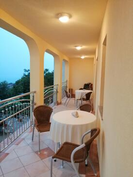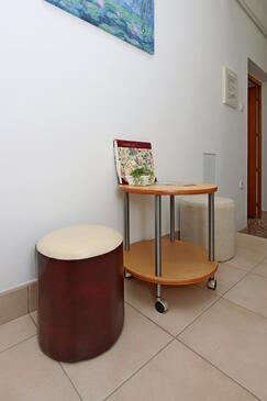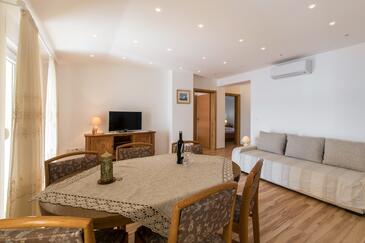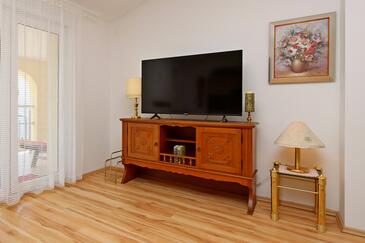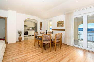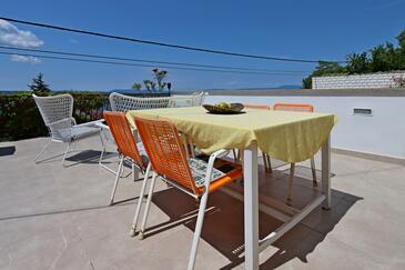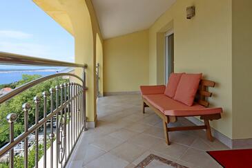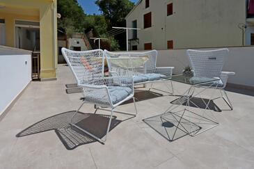 Az Apartman 6 főt tud fogadni. Az ágyak a/az 3 hálószobában vannak, melynek méretei 70m2. A forró nyári estéket a vendégek saját teraszukon élvezhetik. Az apartmanból tengerre néző kilátás nyílik. A közös barbecue-helyet a vendég szabadon használhatja.