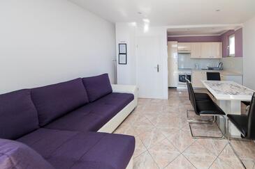 Az Apartman 6 főt tud fogadni. Az ágyak a/az 3 hálószobában vannak, melynek méretei 69m2. A forró nyári estéket a vendégek saját teraszukon élvezhetik. Az apartmanból tengerre néző kilátás nyílik. A közös barbecue-helyet a vendég szabadon használhatja. A vendégek itt tartózkodásuk ideje alatt használhatják a közös medencét.