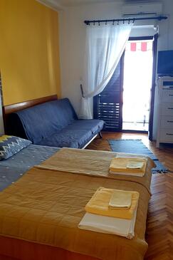 Az Apartman 3 főt tud fogadni. Az ágyak a/az 1 hálószobában vannak, melynek méretei 24m2. A forró nyári estéket a vendégek saját balkonukon élvezhetik. Az apartmanból tengerre néző kilátás nyílik. A közös barbecue-helyet a vendég szabadon használhatja.