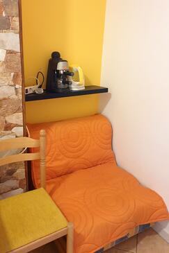 Az Apartman 3 főt tud fogadni. Az ágyak a/az 1 hálószobában vannak, melynek méretei 24m2. A forró nyári estéket a vendégek saját balkonukon élvezhetik. Az apartmanból tengerre néző kilátás nyílik. A közös barbecue-helyet a vendég szabadon használhatja.