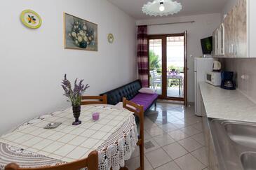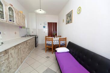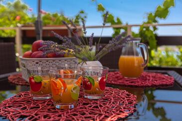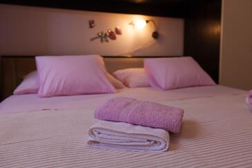 Az Apartman 4 főt tud fogadni. Az ágyak a/az 2 hálószobában vannak, melynek méretei 46m2. A forró nyári estéket a vendégek saját teraszukon élvezhetik. Az apartmanból tengerre néző kilátás nyílik. A közös barbecue-helyet a vendég szabadon használhatja. A szállásegységbe lehetséges háziállatot hozni felár ellenében.