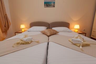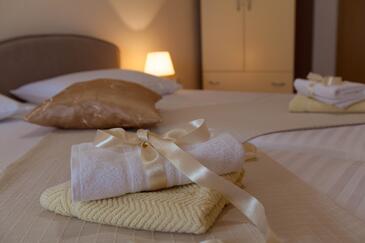 Az Apartman 4 főt tud fogadni. Az ágyak a/az 2 hálószobában vannak, melynek méretei 46m2. A forró nyári estéket a vendégek saját teraszukon élvezhetik. Az apartmanból tengerre néző kilátás nyílik. A közös barbecue-helyet a vendég szabadon használhatja. A szállásegységbe lehetséges háziállatot hozni felár ellenében.