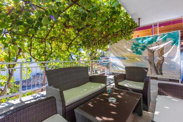 Az Apartman 3 főt tud fogadni. Az ágyak a/az 1 hálószobában, és a nappaliban/ben vannak, melynek méretei 44m2. A forró nyári estéket a vendégek saját balkonukon élvezhetik. Az apartmanból tengerre néző kilátás nyílik. A közös barbecue-helyet a vendég szabadon használhatja.