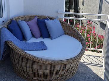 Az Apartman 4 főt tud fogadni. Az ágyak a/az 2 hálószobában vannak, melynek méretei 48m2. A forró nyári estéket a vendégek saját teraszukon élvezhetik. Az apartmanból tengerre néző kilátás nyílik. A közös barbecue-helyet a vendég szabadon használhatja.