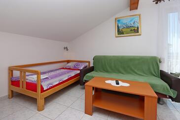 Az Apartman 4 főt tud fogadni. Az ágyak a/az 1 hálószobában, és a nappaliban/ben vannak, melynek méretei 38m2. A forró nyári estéket a vendégek saját balkonukon élvezhetik. Az apartmanból tengerre néző kilátás nyílik. A közös barbecue-helyet a vendég szabadon használhatja. A szállásegységbe lehetséges háziállatot hozni felár ellenében.