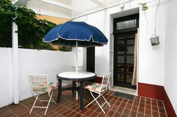 Az Apartman 3 főt tud fogadni. Az ágyak a/az 1 hálószobában, és a nappaliban/ben vannak, melynek méretei 42m2. A forró nyári estéket a vendégek saját teraszukon élvezhetik. Az apartmanból tengerre néző kilátás nyílik. A közös barbecue-helyet a vendég szabadon használhatja. A szállásegységbe lehetséges háziállatot hozni felár ellenében.