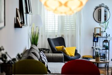 Az Apartman 6 főt tud fogadni. Az ágyak a/az 3 hálószobában vannak, melynek méretei 69m2. A forró nyári estéket a vendégek saját balkonukon élvezhetik. Az apartmanból tengerre néző kilátás nyílik.