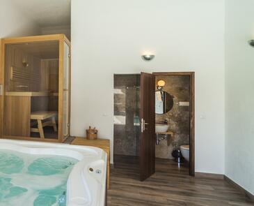 Az Ház 12 főt tud fogadni. Az ágyak a/az 5 hálószobában vannak, melynek méretei 246m2. A forró nyári estéket a vendégek saját teraszukon élvezhetik. A teljes élvezet és kikapcsolódás érdekében van saját barbecue hely is, csakis e szálláshely vendégei számára. A vendégek itt tartózkodásuk ideje alatt kikapcsolódás céljából használhatják a magán medencét. A szállásegységbe lehetséges háziállatot hozni, ennek költségét a foglalási díj tartalmazza.