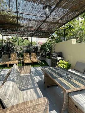 Az Apartman 4 főt tud fogadni. Az ágyak a/az 2 hálószobában vannak, melynek méretei 55m2. A forró nyári estéket a vendégek saját teraszukon élvezhetik. A teljes élvezet és kikapcsolódás érdekében van saját barbecue hely is, csakis e szálláshely vendégei számára.