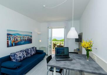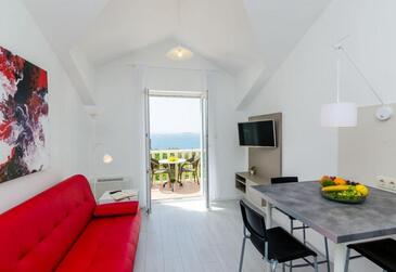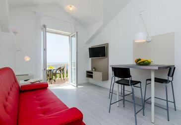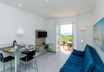 Az Apartman 3 főt tud fogadni. Az ágyak a/az 1 hálószobában, és a nappaliban/ben vannak, melynek méretei 36m2. A forró nyári estéket a vendégek saját teraszukon élvezhetik. Az apartmanból tengerre néző kilátás nyílik.