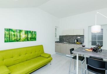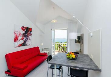 Az Apartman 3 főt tud fogadni. Az ágyak a/az 1 hálószobában, és a nappaliban/ben vannak, melynek méretei 36m2. A forró nyári estéket a vendégek saját teraszukon élvezhetik. Az apartmanból tengerre néző kilátás nyílik.