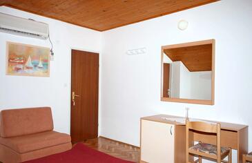 Az Szoba 3 főt tud fogadni. Az ágyak a/az 1 hálószobában vannak, melynek méretei 19m2. A szobából tengerre néző kilátás nyílik. A közös barbecue-helyet a vendég szabadon használhatja. A lefoglalt szállásegység a szoba kategóriába tartozik, amely saját fürdőszobával rendelkezik, azonban konyha illetve konyha használat nem tartozik a felszereltséghez.. A lefoglalt szállásegység közös teraszt használ..