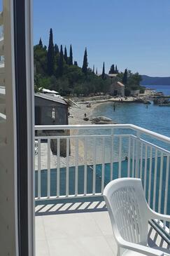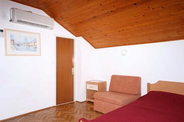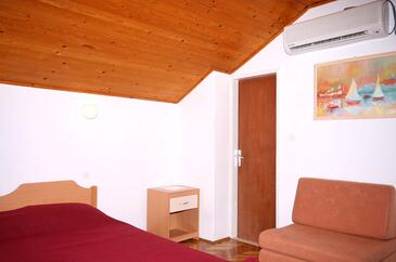 Az Szoba 3 főt tud fogadni. Az ágyak a/az 1 hálószobában vannak, melynek méretei 19m2. A szobából tengerre néző kilátás nyílik. A közös barbecue-helyet a vendég szabadon használhatja. A lefoglalt szállásegység a szoba kategóriába tartozik, amely saját fürdőszobával rendelkezik, azonban konyha illetve konyha használat nem tartozik a felszereltséghez.. A lefoglalt szállásegység közös teraszt használ..