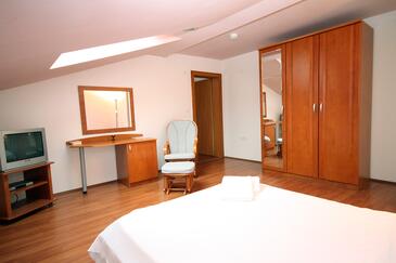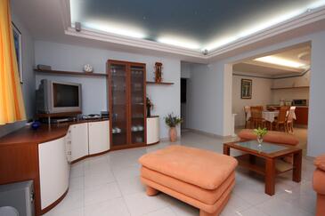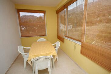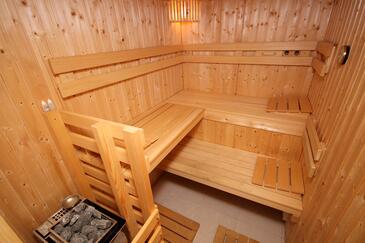 Az Apartman 4 főt tud fogadni. Az ágyak a/az 2 hálószobában vannak, melynek méretei 75m2. A forró nyári estéket a vendégek saját teraszukon élvezhetik. Az apartmanból tengerre néző kilátás nyílik. A közös barbecue-helyet a vendég szabadon használhatja. A szállásegységbe lehetséges háziállatot hozni felár ellenében.
